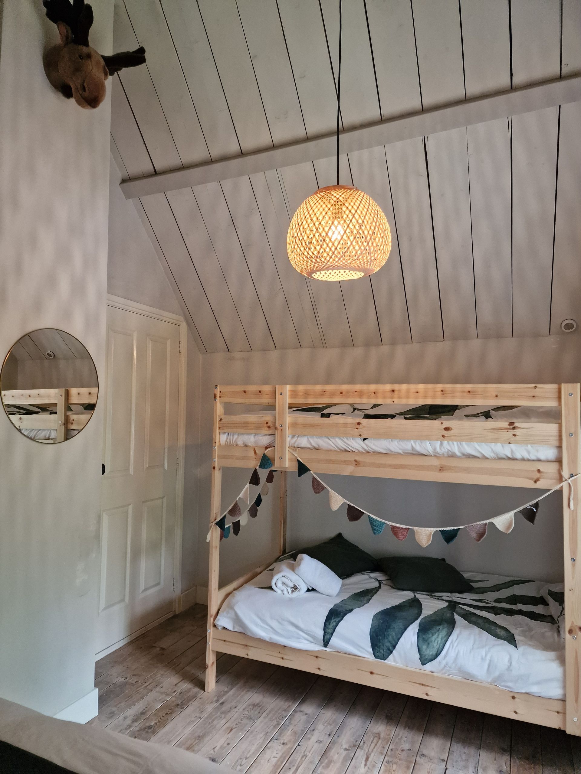 In de tweede slaapkamer staat een tweepersoonsbed en een stapelbed. Het stapelbed is natuurlijk extra leuk voor de kids.